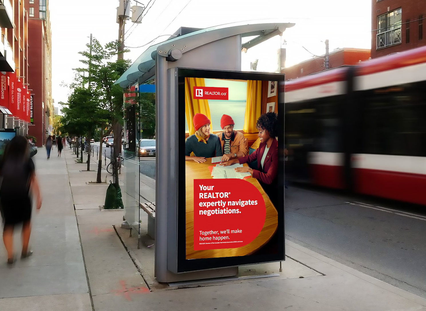 - Out-of-home: Billboards and digital screens across Toronto and Vancouver maximize visibility in Canada’s busiest markets, achieving impressive ad recall and positive reputation shifts. Up to 90% of viewers feel a more positive impression towards REALTORS® after seeing these ads.