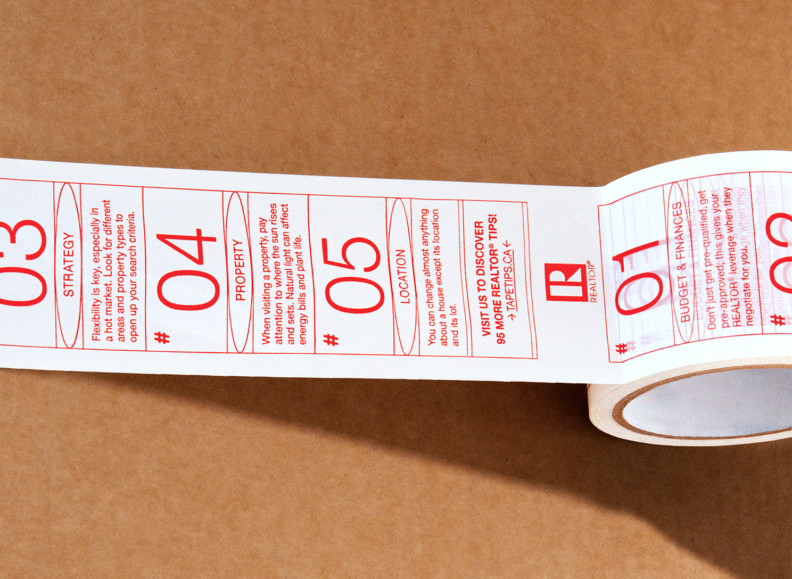 We learned 49% of Canadians want to buy a home, but only 11% feel prepared. So, CREA invited REALTORS® to share their best advice. From more than 1,000 submissions, a list of 100 top tips were curated, with a selection printed on custom packing tape and shared on tapetips.ca, through digital ads, and in influencer campaigns.