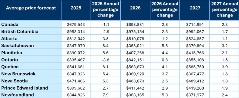 The national average home price is forecast to edge up by 2.3% from 2026 to $714,991 in 2027, with slightly larger gains in Saskatchewan and Quebec, and other provinces in the 1%-2.5% range. This would mark the seventh straight year that the national average home price has hovered close to the $700,000 range.